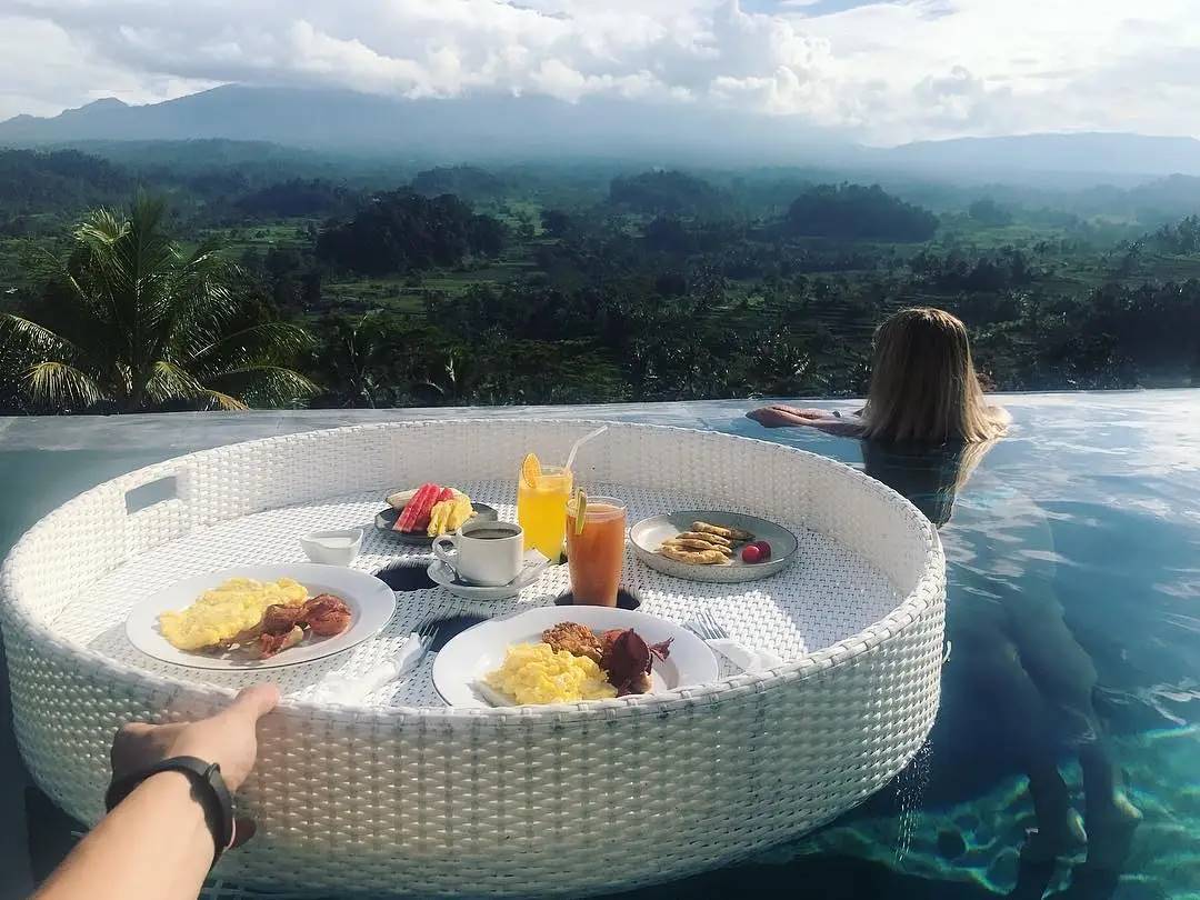 Jika kamu berhalangan untuk turun ke restoran, kamu bisa pesan lewat room service. Untuk makan pagi, kamu bisa request floating breakfast di kolam renang ya!