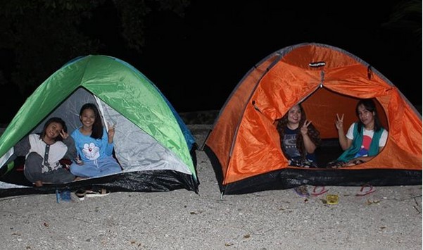 Para pengunjung bisa memilih untuk membangun tenda di tanaman rumpun atau di pinggir pantai dengan membayar sewa Rp.50 ribu kepada pengelola.