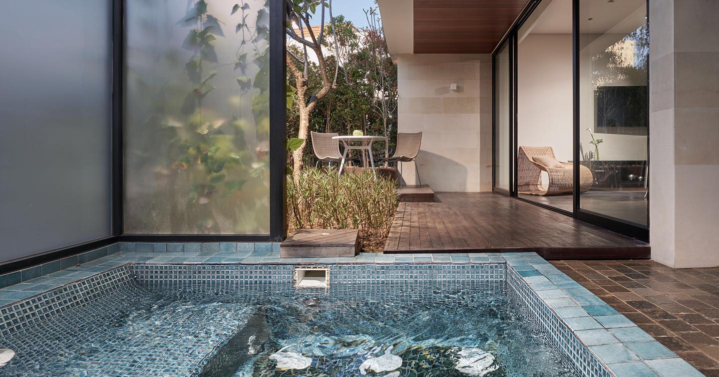 Jika kamu ingin memiliki jacuzzi pribadi di dalam kamar, silahkan pesan tipe Family Loft Suite. Sebab, tipe kamar ini ada yang memiliki jacuzzi pribadi.