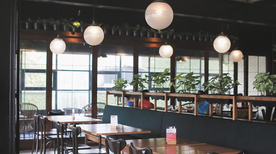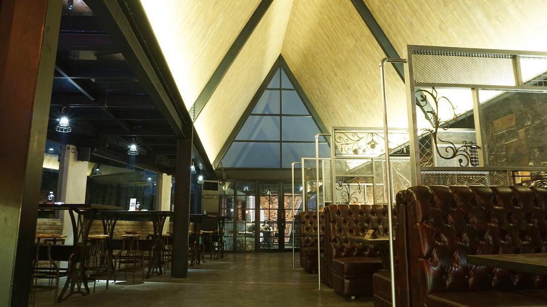 Cafe dan resto ini terlihat berbeda dengan bangunan di sekelilingnya, karena menggunakan bata ekspose serta interior beraksen kuno.