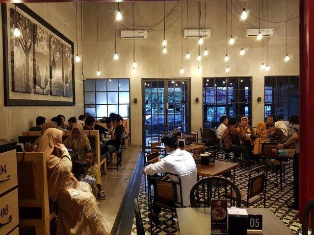 Grill on Resto ini memiliki desain interior unik yang merupakan perpaduan antara vintage resto dan industrial.
