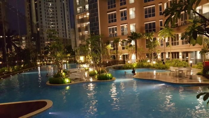 Ada banyak fasilitas di dalamnya seperti kolam renang, fitness center, playground, jogging track, bahkan supermarket. Letaknya ada di jalan utama sehingga aksesnya cukup bagus.