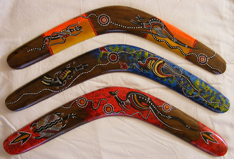 Australia ternyata punya senjata khas lho, yaitu Boomerang. Ternyata senjata khas Suku Aborigin ini tidak lepas dari buruan para wisatawan untuk dijadikan oleh2. Bentuknya yang khas membuat wisatawan tertarik untuk memilikinya.