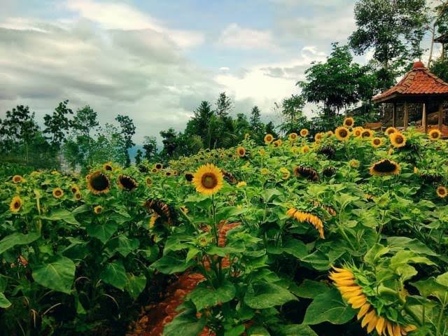 Bukan hanya spot bambu I Love U dan batu goyang, keberadaan kebun bunga matahari juga menjadi salah satu lokasi foto paling banyak diburu para wisatawan.