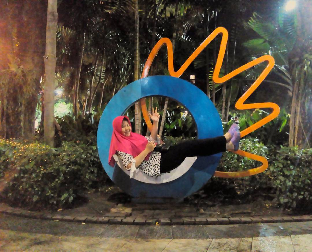 Kondisi tempat tersebut juga sangat terang karena disinari banyak lampu taman dan lampu penerang jalan raya. Lampu penerang taman ada yang berbentuk burung kakak tua dan kupu-kupu sehingga membuat anak-anak semakin senang.