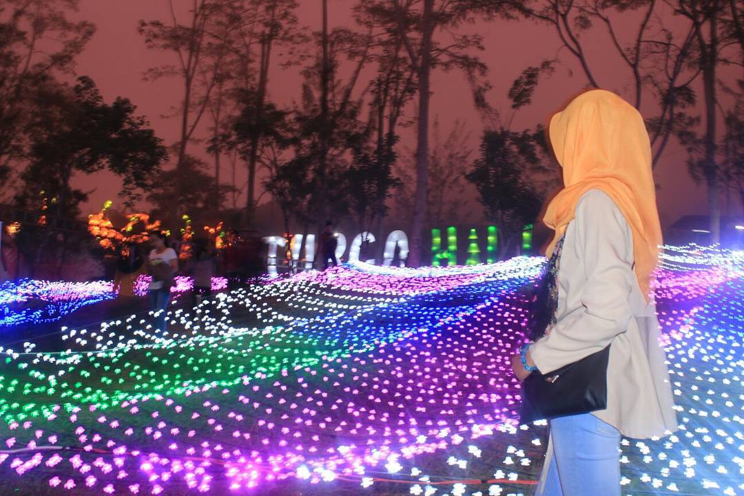 Keindahannya bertambah lewat gemerlap lampu-lampu LED dan lampion yang menghiasi area seluas kurang lebih 1 hektar tersebut.