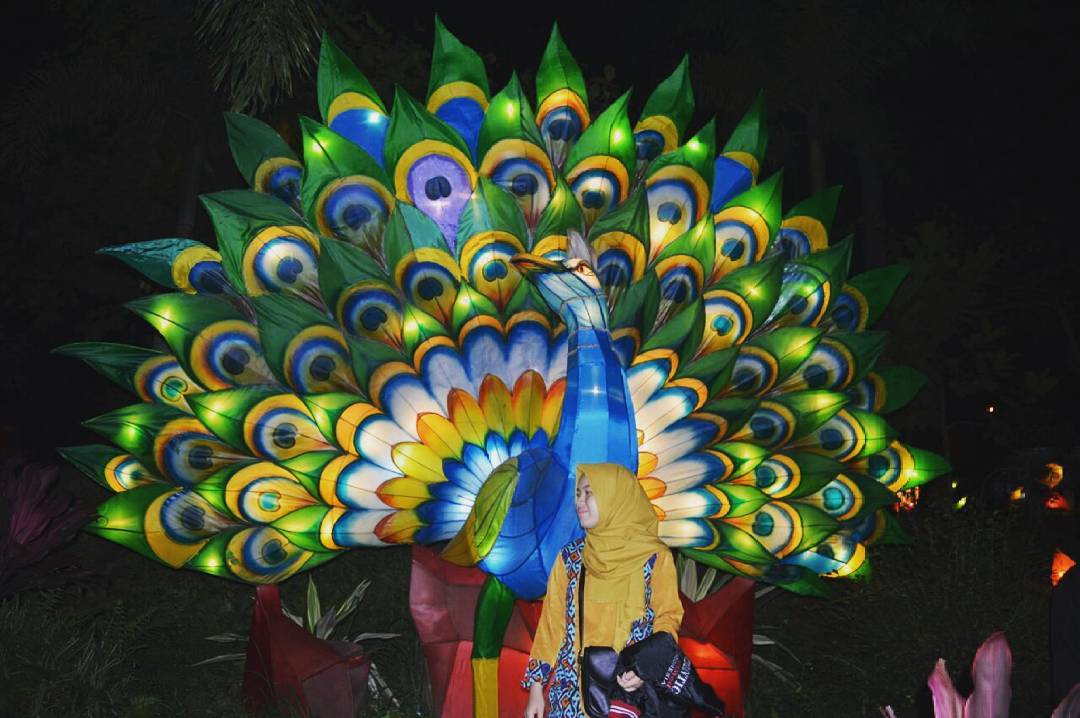 Bentuk-bentuk lampu yang dihadirkan pada saat itu, meliputi berbagai jenis dinosaurus, binatang, bunga, padang rumput, istana yang bercahaya dan sebagainya.