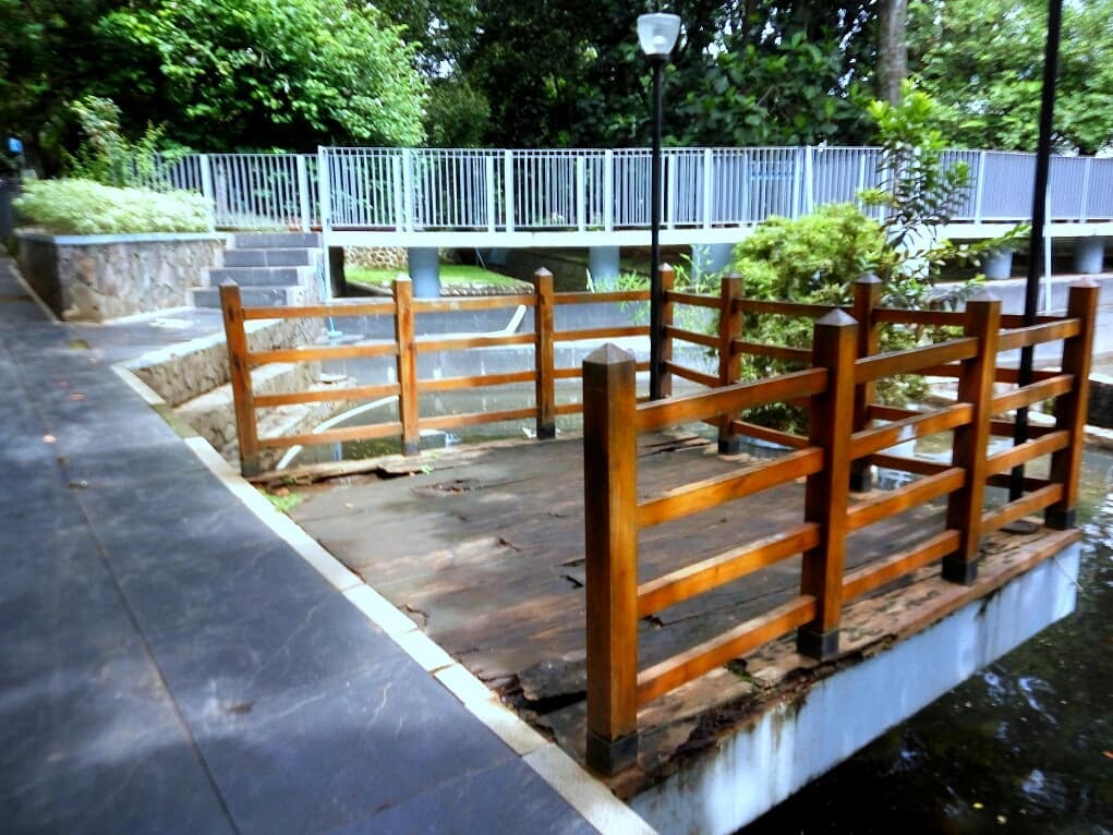 Asyik lagi dari denah Taman lansia ini diketahui bahwa adasebuah jembatan yang dapat menghubungkan kedua bagian danau.