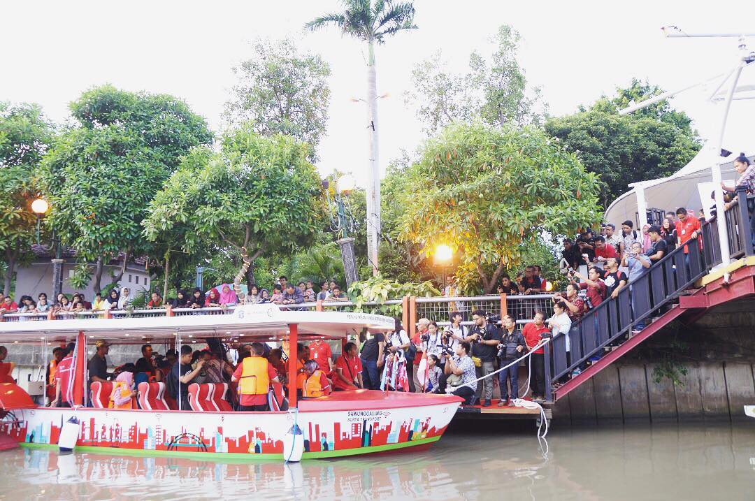 Ini nih, yang paling dicari banyak pengunjung yaitu wahana air berupa Perahu yang melintasi Sungai Kalimas.