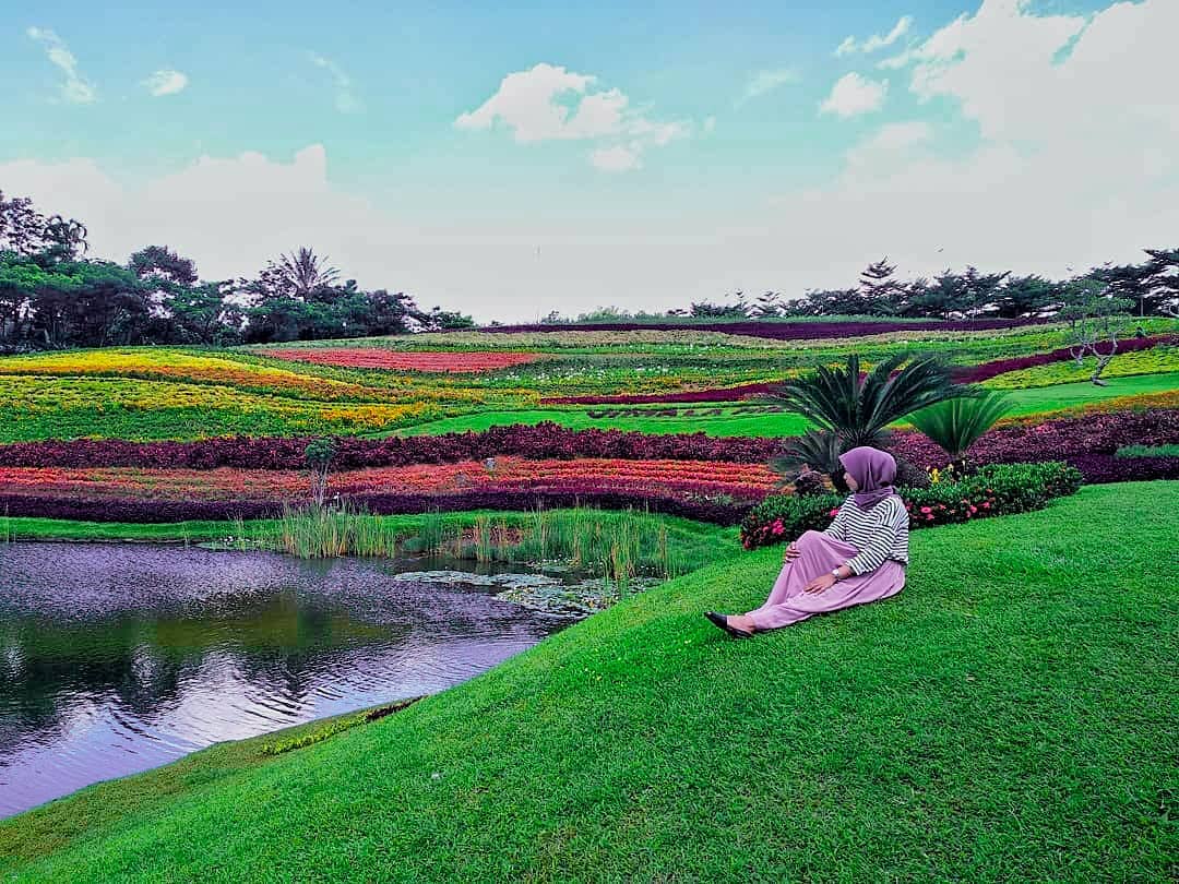 Hamparan bunga warna-warni yang ditata rapi dan aesthetic membuat Taman Vimala Hills ini diserbu oleh para kaum milenials demi mendapatkan foto cakep untuk kebutuhan feeds instagram.