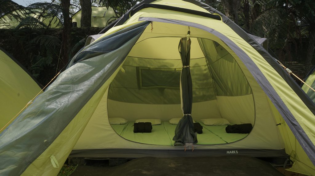 Ketika rekan-rekan memasuki area camp akan disambut dengan jajaran tenda dengan kasur empuk dan colokan listrik yang akan membuat kalian merasa sedang berada di dalam hotel atau villa, bukannya berkemah.