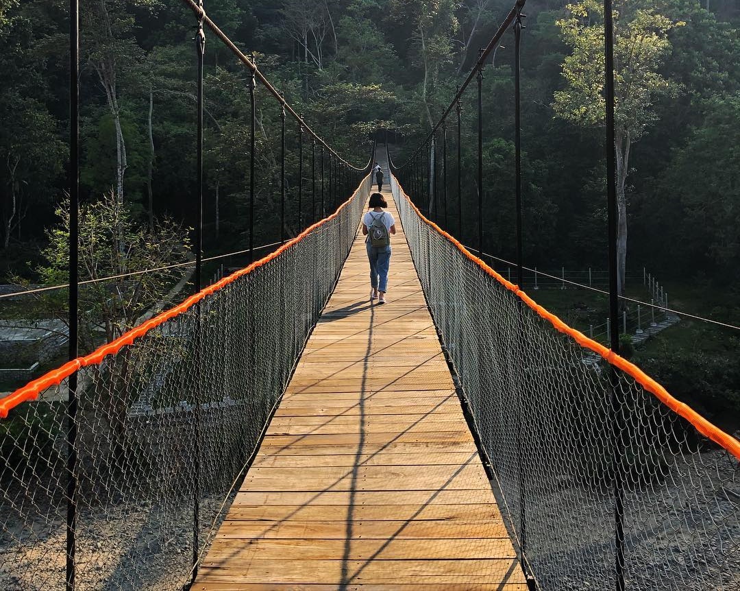 Dari jembatan ini para pengunjung bisa melihat pemandangan indah akan hutan dan sungai serta bisa mengambil gambar dengan kamera.