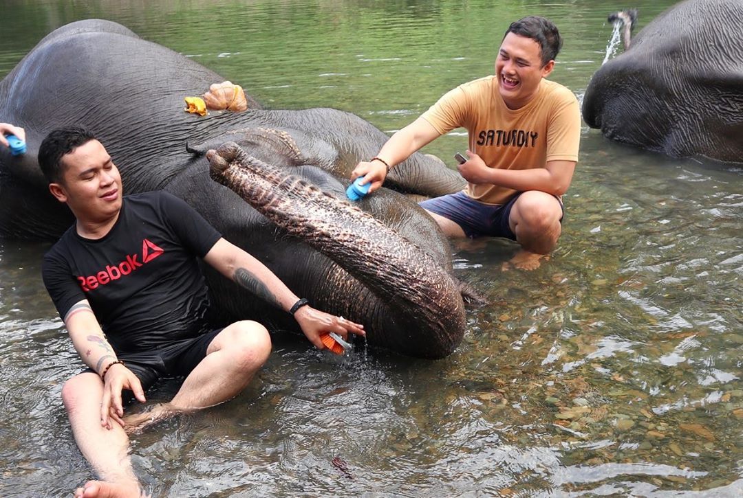 Tentu saja para pengunjung bisa menikmati sensasi dengan merasakan sendiri bagaimana rasanya mandi dengan seekor gajah.
