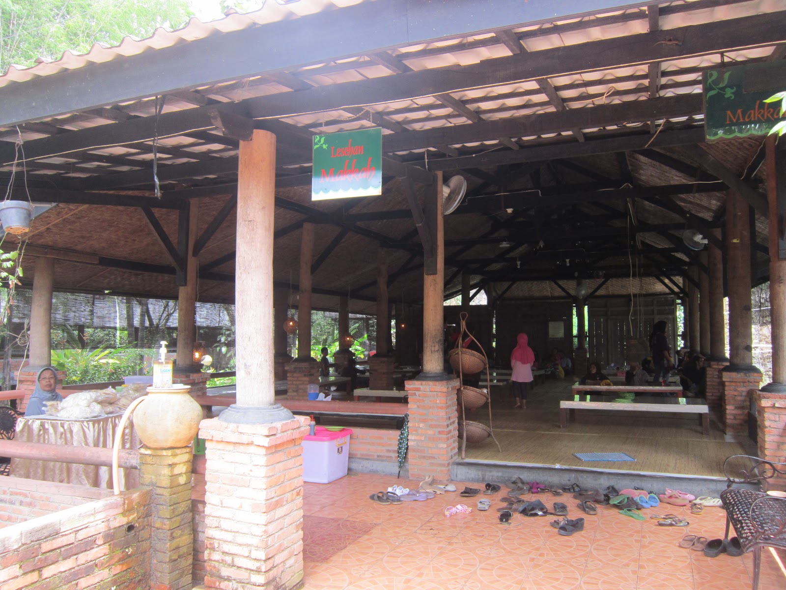 Suasananya nyaman dan asri. Desainnya bernuansa tradisional dan artistik. Ruang makan berbentuk saung, duduknya lesehan dan berada di atas kolam ikan. Tersedia live music juga atau karaoke, juga kolam renang dan perahu untuk refreshing bersama anak.