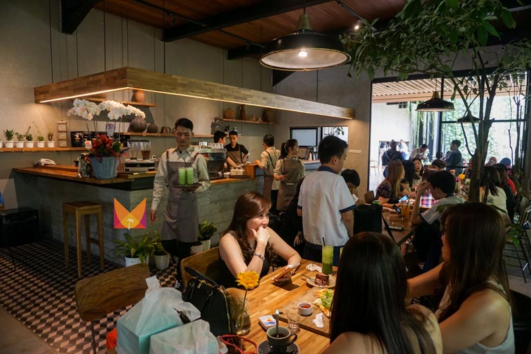 Konsep cafenya lebih ke industrial style dengan ciri khas dinding bata yang dibiarkan terbuka tanpa ditimpa semen dan cat lagi. Working spacenya juara banget deh, bisa buat foto-foto juga.
