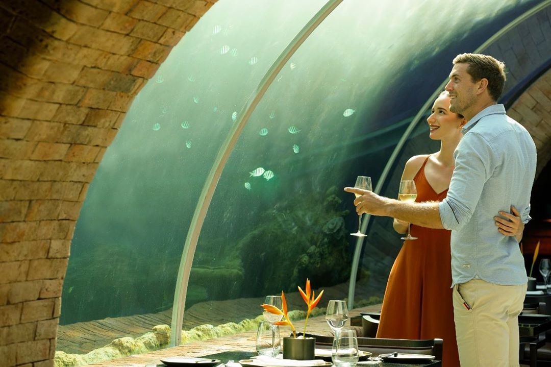 Buat yang ingin berbulan madu di resort mewah yang masih tergolong baru, kalian bisa coba untuk menginap di The Apurva Kempinski Bali. Hotel yang terletak di atas tebing ini juga punya restoran dengan aquarium berukuran super besar.