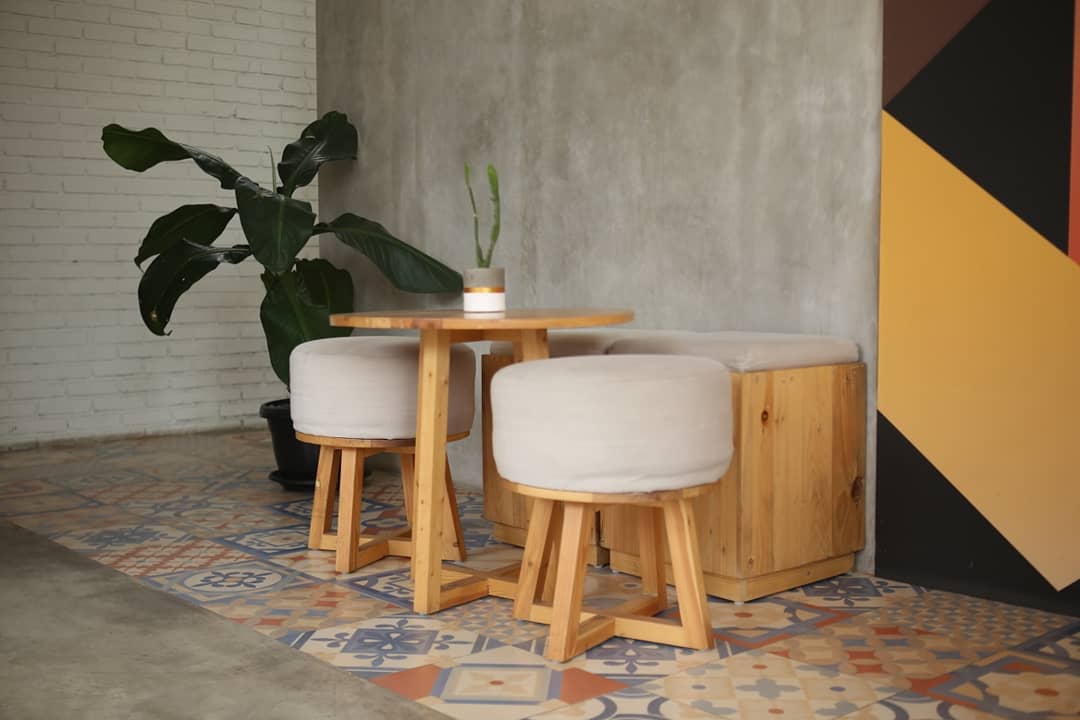 Tidak hanya itu saja, lantainya juga bervariasi. Ada yang dilapisi semen saja, namun ada juga yg dilapisi keramik bermotif cantik. Penggunaan elemen kayu pun turut menambah kesan natural.