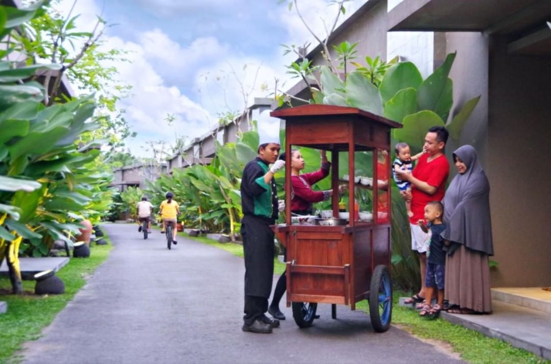 Selain itu, kamu juga bisa pesan bakso gerobak yang akan keliling hotel ini setiap sore serta sate apung. Harganya adalah Rp. 15.000 per mangkok untuk bakso.