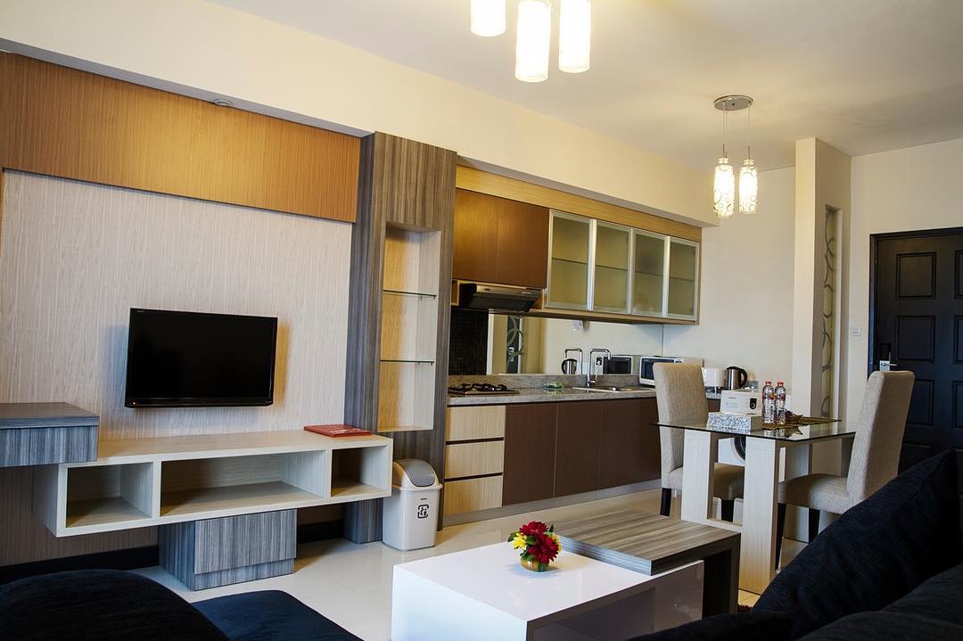 Tentu saja, berbeda dengan kamar hotel biasa, apartemen juga difasilitasi ruang tamu dan dapur kecil. Ruang tidurnya terpisah sehingga ada privacy lebih.