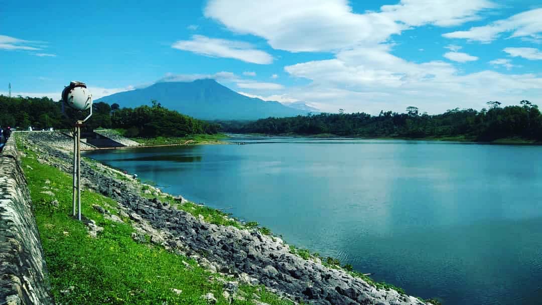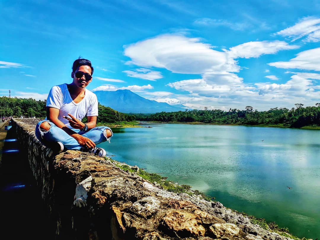 Dengan view hamparan kolam raksasa berlatar belakang hijaunya pepohonan dan pegunungan di kejauhan, kawasan di sekitar waduk menjadi tempat yang ideal untuk dipakai beristirahat.
